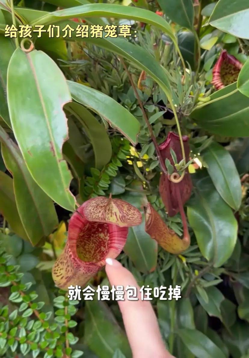 熊黛林还给孩子们介绍了猪笼草,就是苍蝇或者其他小飞虫掉进猪笼草里面,那个花朵就会慢慢闭合,小昆虫就再也出不来了。