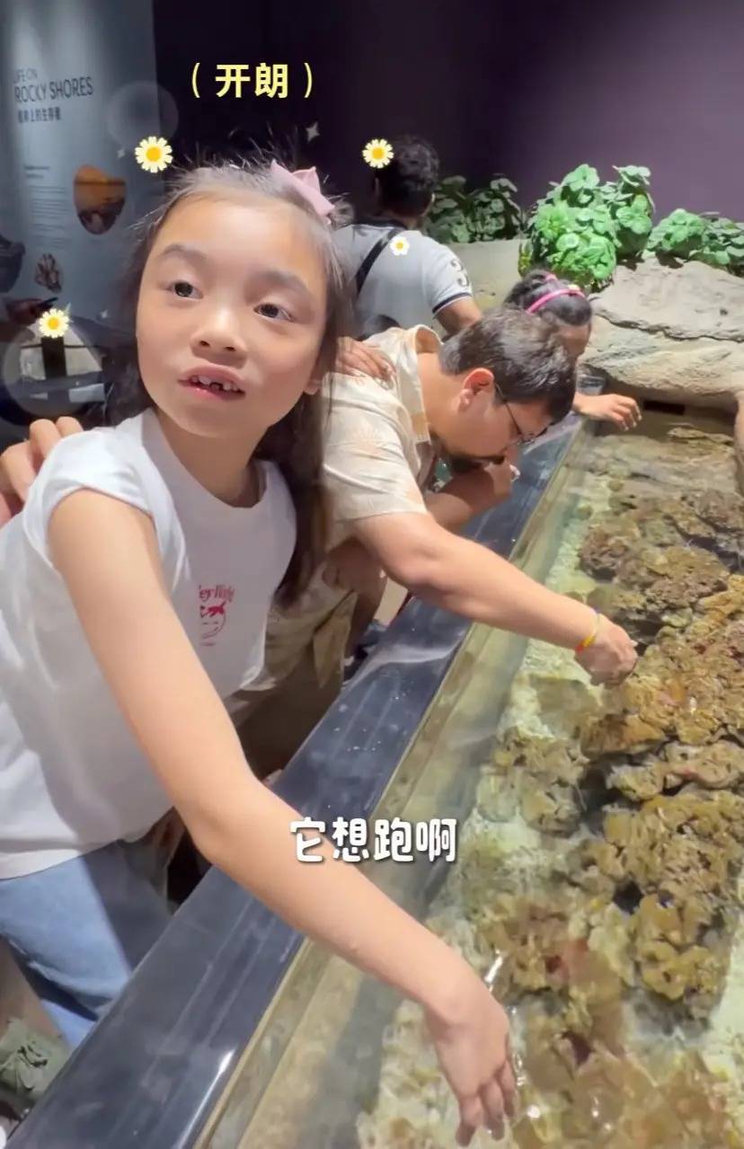 他们去了海洋馆、还参观了恐龙王国。7岁的妹妹在妈妈的鼓励下,徒手摸了摸皮皮虾,十分勇敢。
